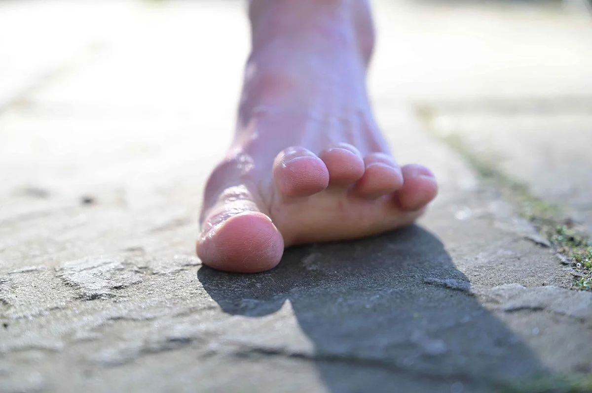 adequate big toe extension < strong push-off when walking < strong gluteal muscles < stronger pelvic floor contractions & happier back